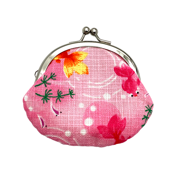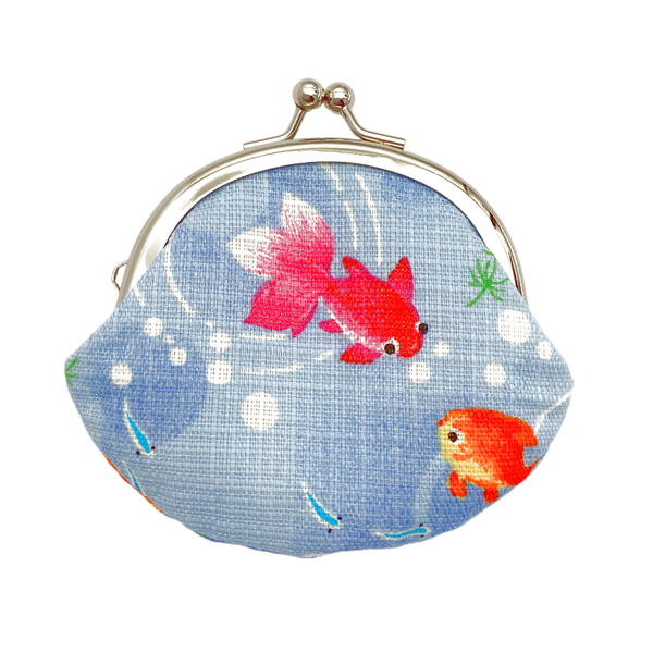 縁日やシリーズ金魚の2.6寸がま口です。 涼しげな金魚がデザインされています。水の中をすいすい泳いでいる感じが可愛いですね。 2.6寸のサイズは小銭入れとして、ちょうど良いサイズです。 他にもイヤホンや薬、目薬、リップケースとしても使いやすいです。 電子マネーやQRコード決済が増えてる最近ですが、ちょっとした外出には小銭を入れたがま口があれば安心ですね。 金魚のデザインは外国人観光客へのお土産やプレゼントにも喜ばれます。
