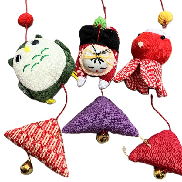 <ちりめん和雑貨 笑夢留(エムルー)>色彩豊かでそれぞれのキャラクターの表情に癒される人気のちりめん一本吊りシリーズです。※色はアソート・1セット3個入りです。#エムルー #タペストリー #Tapestry #Fortune #縁起 #幸運 #開運 (Assorted 3 pieces)